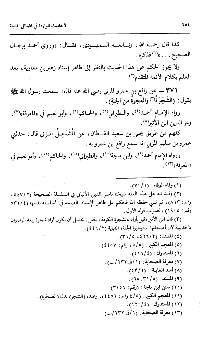 كذا قال رحمه الله، وتابعه السمهودي، فقال: ((وروى أحمد برجال الصحيح ... )) (1) فذكره.