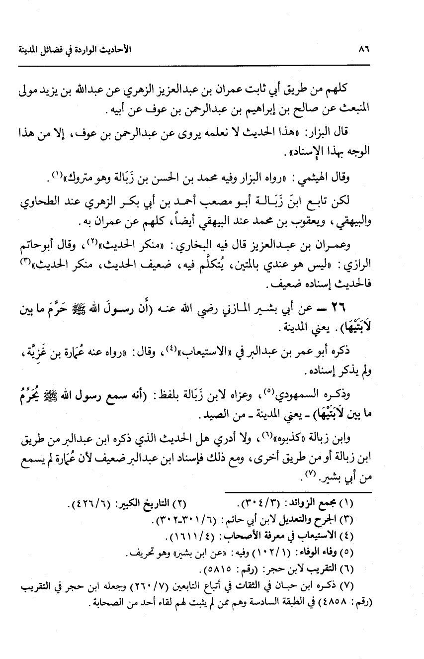 26 - عن أبي بشير المازني رضي الله عنه (أن رسول الله صلى الله عليه وسلم حرم ما بين لابتيها).