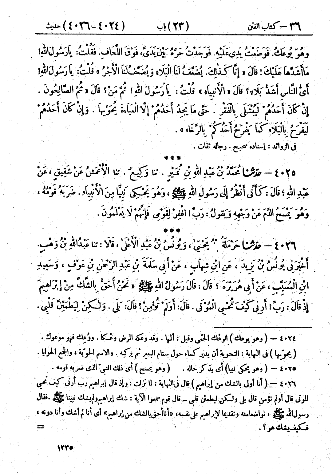4025 - حَدَّثَنَا مُحَمَّدُ بْنُ عَبْدِ اللَّهِ بْنِ نُمَيْرٍ قَالَ: حَدَّثَنَا وَكِيعٌ قَالَ: حَدَّثَنَا الْأَعْمَشُ، عَنْ شَقِيقٍ، عَنْ عَبْدِ اللَّهِ، قَالَ: §كَأَنِّي أَنْظُرُ إِلَى رَسُولِ اللَّهِ صَلَّى اللهُ عَلَيْهِ وَسَلَّمَ، وَهُوَ يَحْكِي نَبِيًّا مِنَ الْأَنْبِيَاءِ، ضَرَبَهُ قَوْمُهُ، وَهُوَ يَمْسَحُ الدَّمَ عَنْ وَجْهِهِ، وَيَقُولُ: «رَبِّ اغْفِرْ لِقَوْمِي فَإِنَّهُمْ لَا يَعْلَمُونَ»