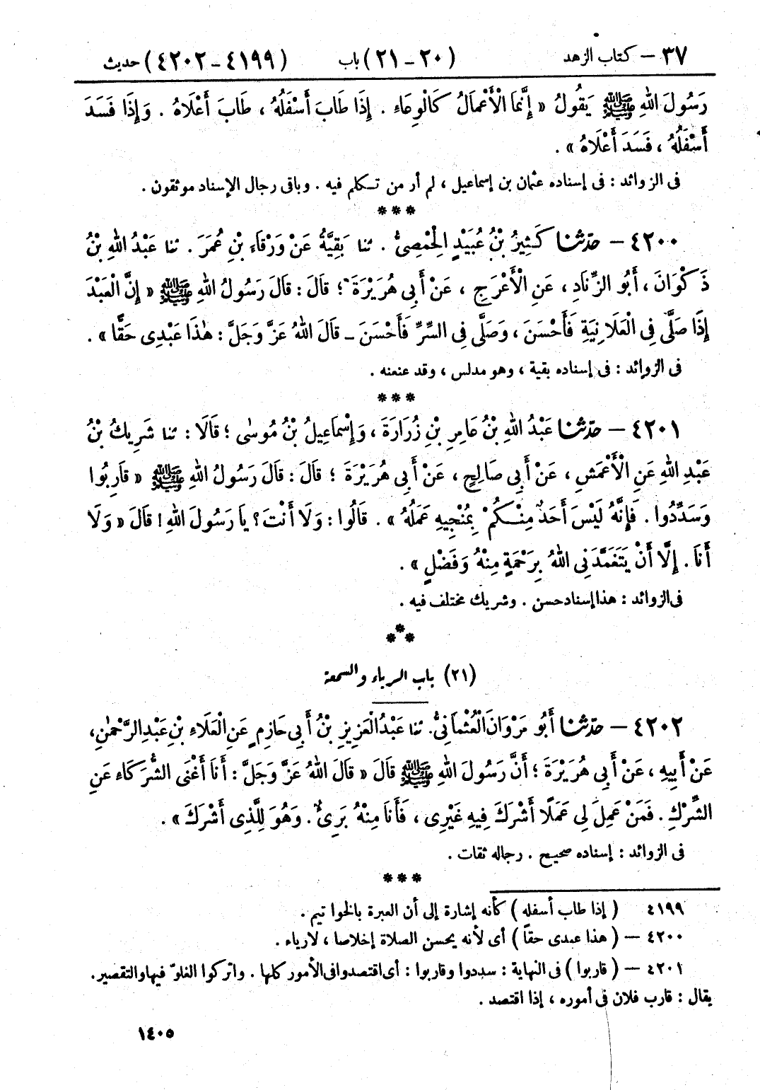 4202 - حَدَّثَنَا أَبُو مَرْوَانَ الْعُثْمَانِيُّ قَالَ: حَدَّثَنَا عَبْدُ الْعَزِيزِ بْنُ أَبِي حَازِمٍ، عَنِ الْعَلَاءِ بْنِ عَبْدِ الرَّحْمَنِ، عَنْ أَبِيهِ، عَنْ أَبِي هُرَيْرَةَ، أَنَّ رَسُولَ اللَّهِ صَلَّى اللهُ عَلَيْهِ وَسَلَّمَ، قَالَ: قَالَ اللَّهُ عَزَّ وَجَلَّ: «§أَنَا أَغْنَى الشُّرَكَاءِ عَنِ الشِّرْكِ، فَمَنْ عَمِلَ لِي عَمَلًا أَشْرَكَ فِيهِ غَيْرِي، فَأَنَا مِنْهُ بَرِيءٌ، وَهُوَ لِلَّذِي أَشْرَكَ»