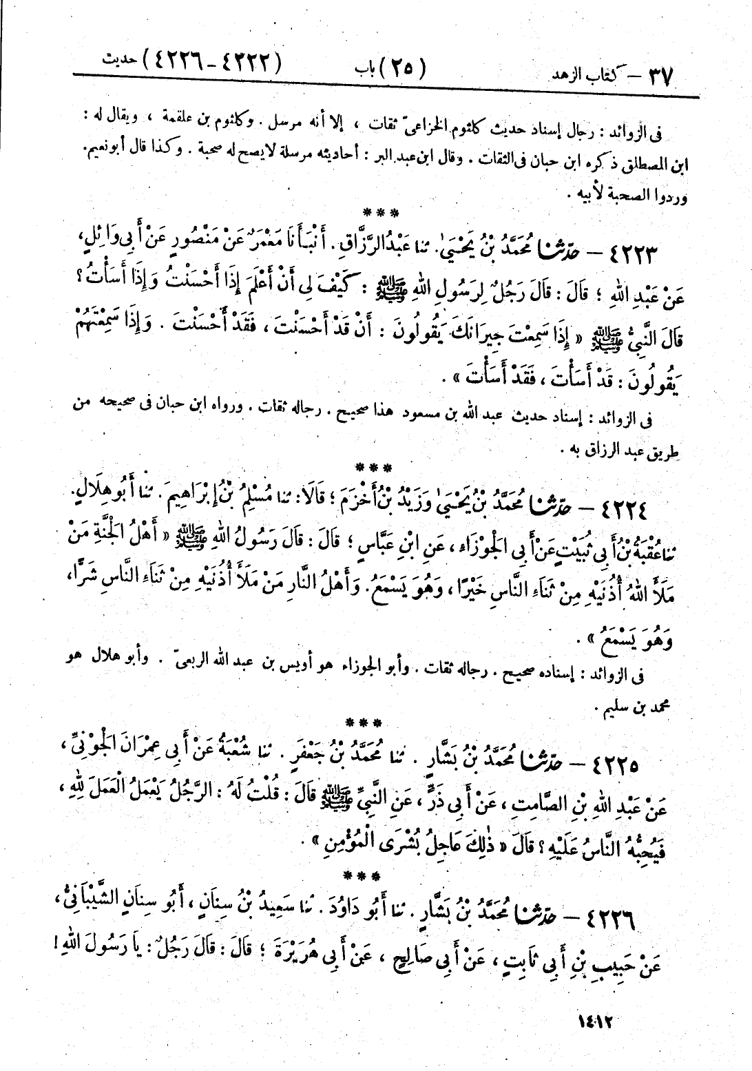 Zفي الزوائد إسناده حديث عبد الله بن مسعود هذا صحيح. رجاله ثقات. ورواه ابن حبان في صحيحه من طريق عبد الرزاق به.