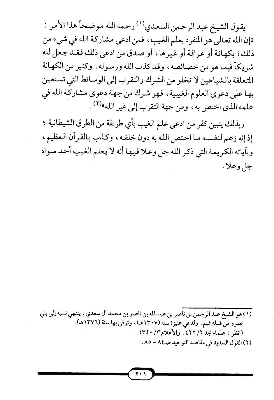 2 القول السديد في مقاصد التوحيد ص84-85.