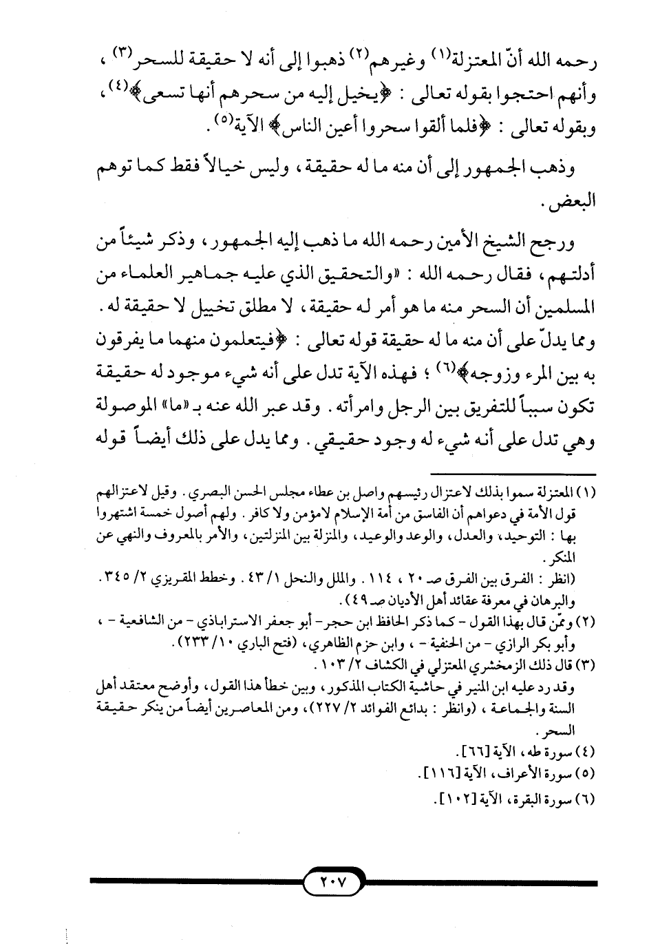 3 قال بذلك الزمخشري المعتزلي في الكشاف 2/103. وقد رد عليه ابن المنيّر في حاشية الكتاب المذكور، وبين خطأ هذا القول وأوضح معتقد أهل السنة والجماعة (وانظر: بدائع الفوائد 2/227) ، ومن المعاصرين أيضا من ينكر حقيقة السحر.