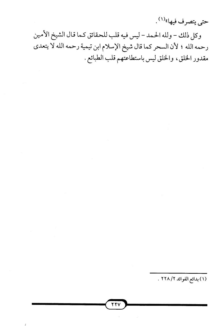 وكل ذلك –ولله الحمد- ليس فيه قلب للحقائق كما قال الشيخ الأمين -رحمه الله-؛ لأن السحر كما قال شيخ الإسلام ابن تيمية -رحمه الله- لا يتعدى مقدور الخلق، والخلق ليس باستطاعتهم قلب الطبائع.