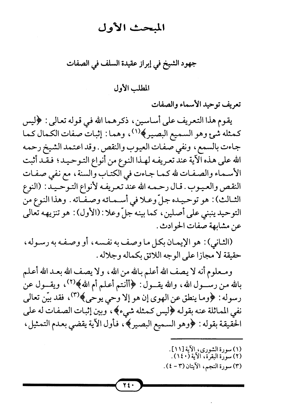 المبحث الأول: جهود الشيخ في إبراز عقيدة السلف في الصفات