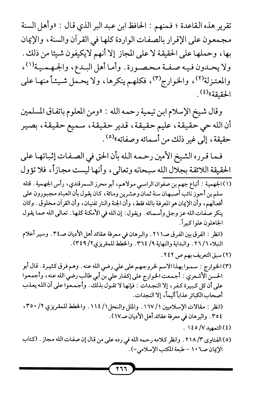 5 الفتاوى 3/218. وانظر كلامه -رحمه الله- في رده على من قال إن صفات الله مجاز. (كتاب الإيمان ص106 –طبعة المكتب الإسلامي-) .