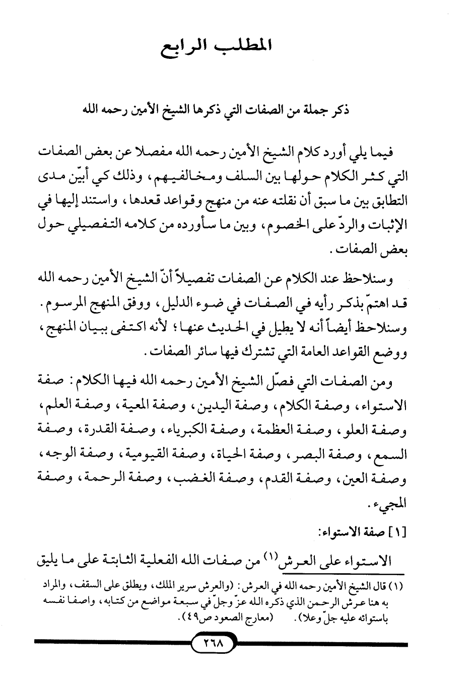 المطلب الرابع: ذكر جملة من الصفات التي ذكرها الشيخ الأمين –رحمه الله-