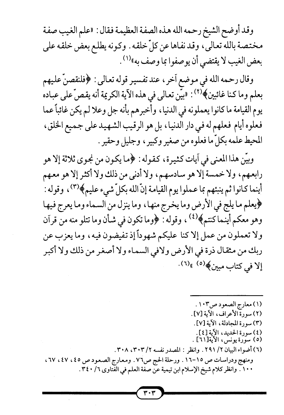 ومنهج ودراسات ص15-16. ورحلة الحج ص76. ومعارج الصعود ص45، 47، 67، 100. وانظر كلام شيخ الإسلام ابن تيمية عن صفة العلم في الفتاوى 6/340.