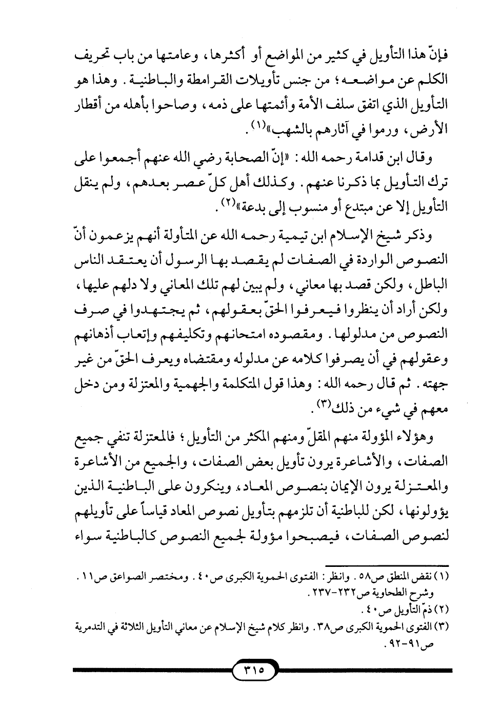 3 الفتوى الحموية الكبرى ص38. وانظر كلام شيخ الإسلام عن معاني التأويل الثلاثة في التدمرية ص91-92.