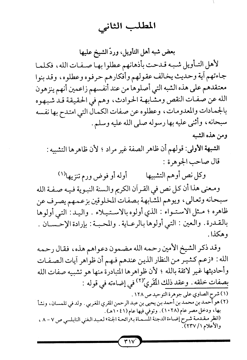 المطلب الثاني: بعض شبه أهل التأويل، وردّ الشيخ عليها