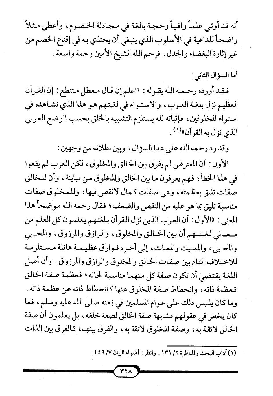 1 آداب البحث والمناظرة 2/131. وانظر: أضواء البيان 7/449.
