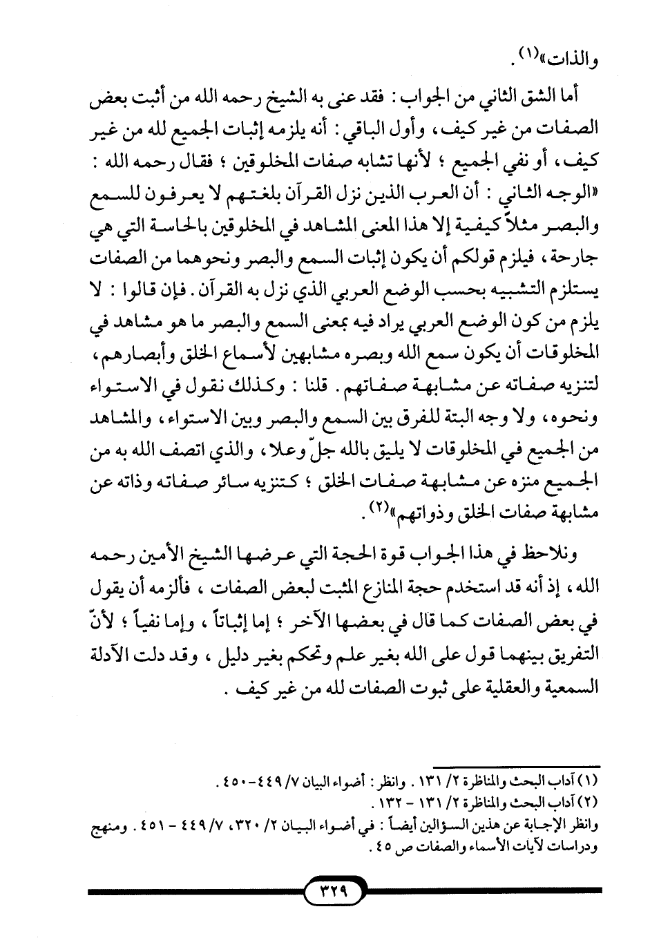 1 آداب البحث والمناظرة 2/131. وانظر: أضواء البيان 7/449-450.