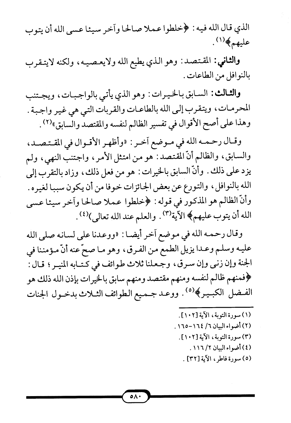 1 أضواء البيان 7/604. وانظر المصدر نفسه 4/362، 6/574. ومعارج الصعود ص248.