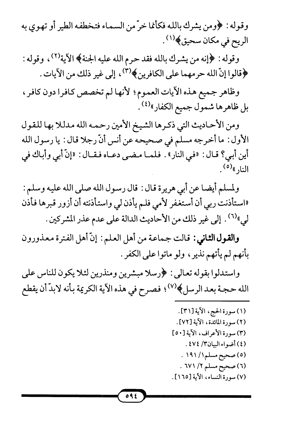 وبهذا يتبين لنا أن الشيخ الأمين –رحمه الله- يقول بما قال به السلف، رحمهم الله في حكم العصاة، وأنهم لا يخرجون بمعصيتهم عن حظيرة المؤمنين، بل هم مؤمنون ناقصوا الإيمان، وهم تحت المشيئة إن شاء الله عذبهم بعدله، وإن شاء عفا عنهم بمنه وكرمه سبحانه وتعالى.