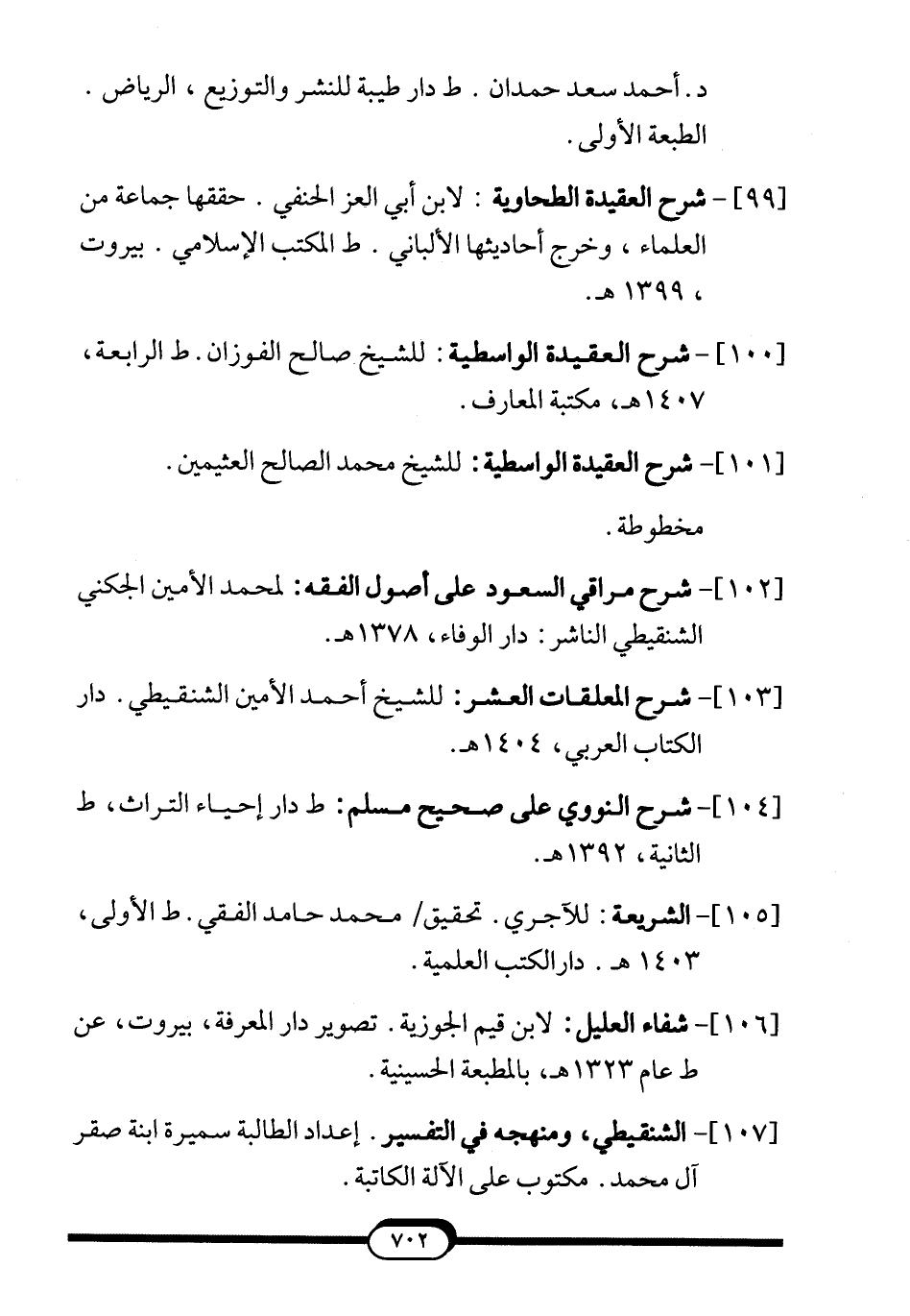 82- زاد المعادر: لابن قيم الجوزية. تحقيق/ شعيب وعبد القادر الأرناؤوط. ط الثالثة. 1402هـ مؤسسة الرسالة.