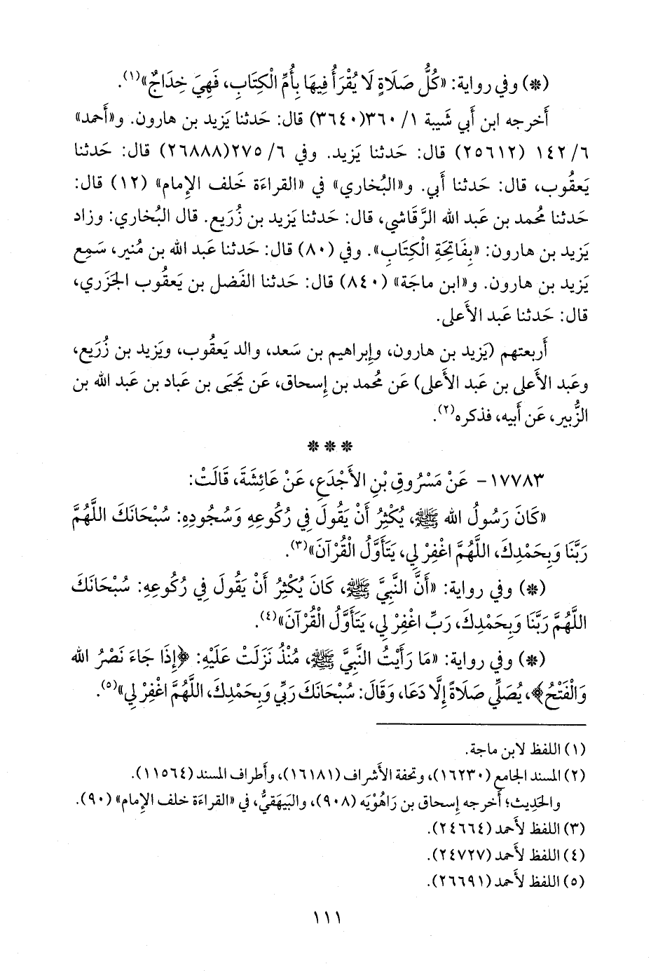- وفي رواية: «ما صلى النبي صَلى الله عَليه وسَلم صلاة بعد أن نزلت عليه: {إذا جاء نصر الله والفتح} إلا يقول فيها: سبحانك ربنا وبحمدك، اللهم اغفر لي» (¬٤).