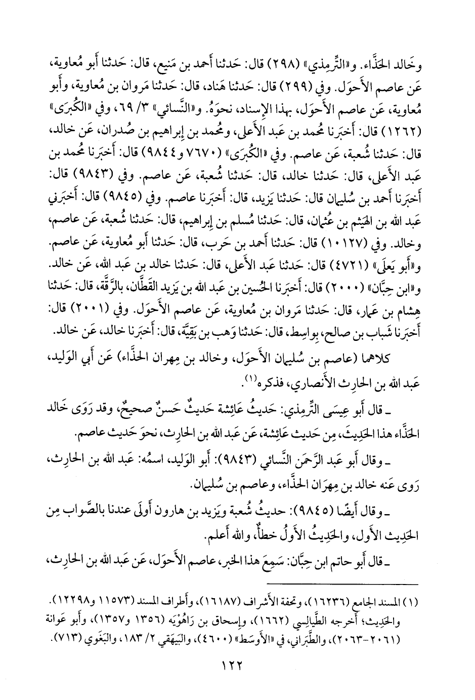 - قال أَبو حاتم بن حبان: سمع هذا الخبر، عاصم الأحول، عن عبد الله بن الحارث،