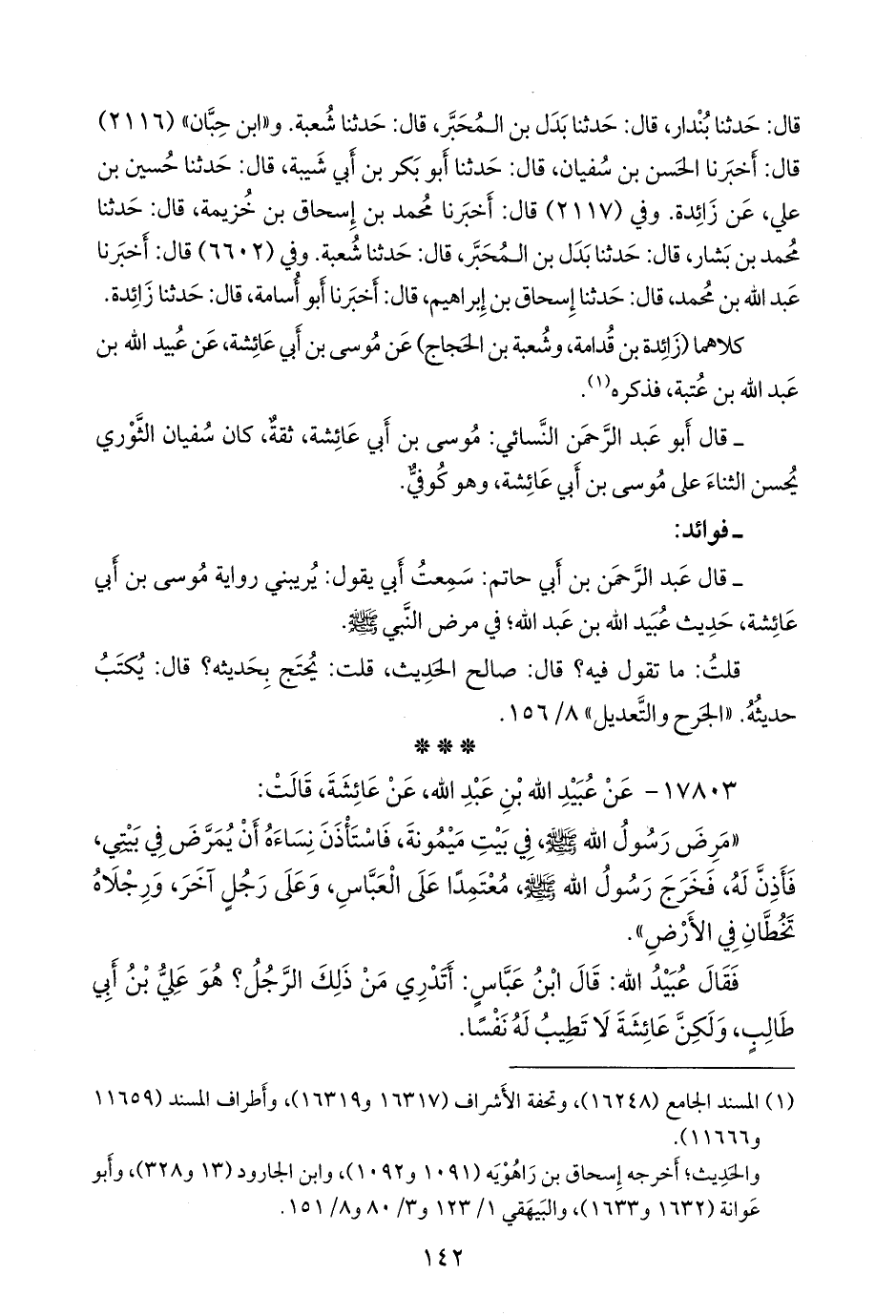 ١٧٨٠٣ - عن عُبيد الله بن عبد الله، عن عائشة، قالت: