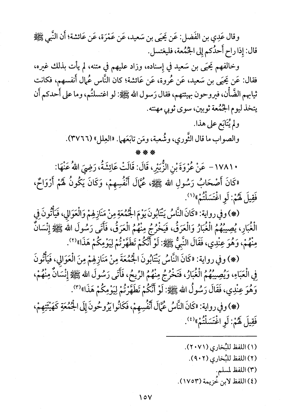 - وفي رواية: «كان الناس عمال أنفسهم، فكانوا يروحون إلى الجمعة كهيئتهم، فقيل لهم: لو اغتسلتم» (¬٤).