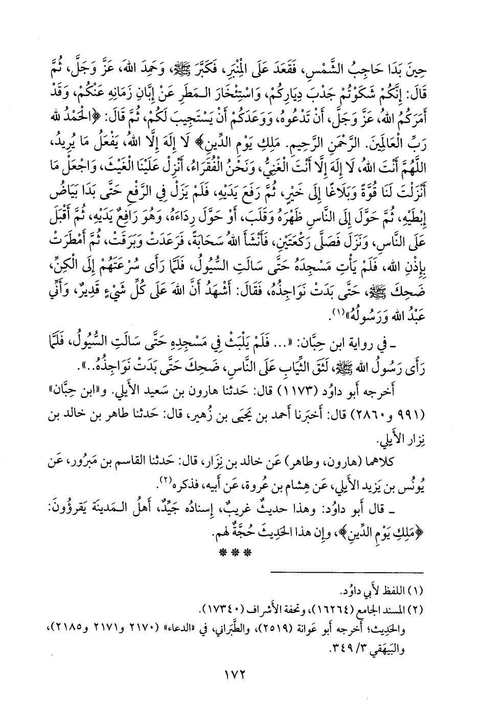 - قال أَبو داود: وهذا حديثٌ غريبٌ، إسناده جيد، أهل المدينة يقرؤون: {ملك يوم الدين}، وإن هذا الحديث حجة لهم.