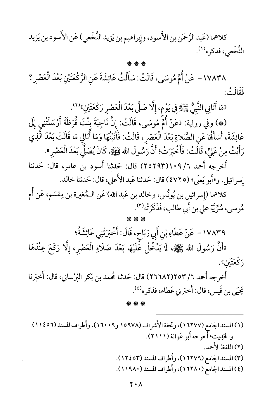 ١٧٨٣٨ - عن أُم موسى، قالت: سألت عائشة عن الركعتين بعد العصر؟ فقالت: