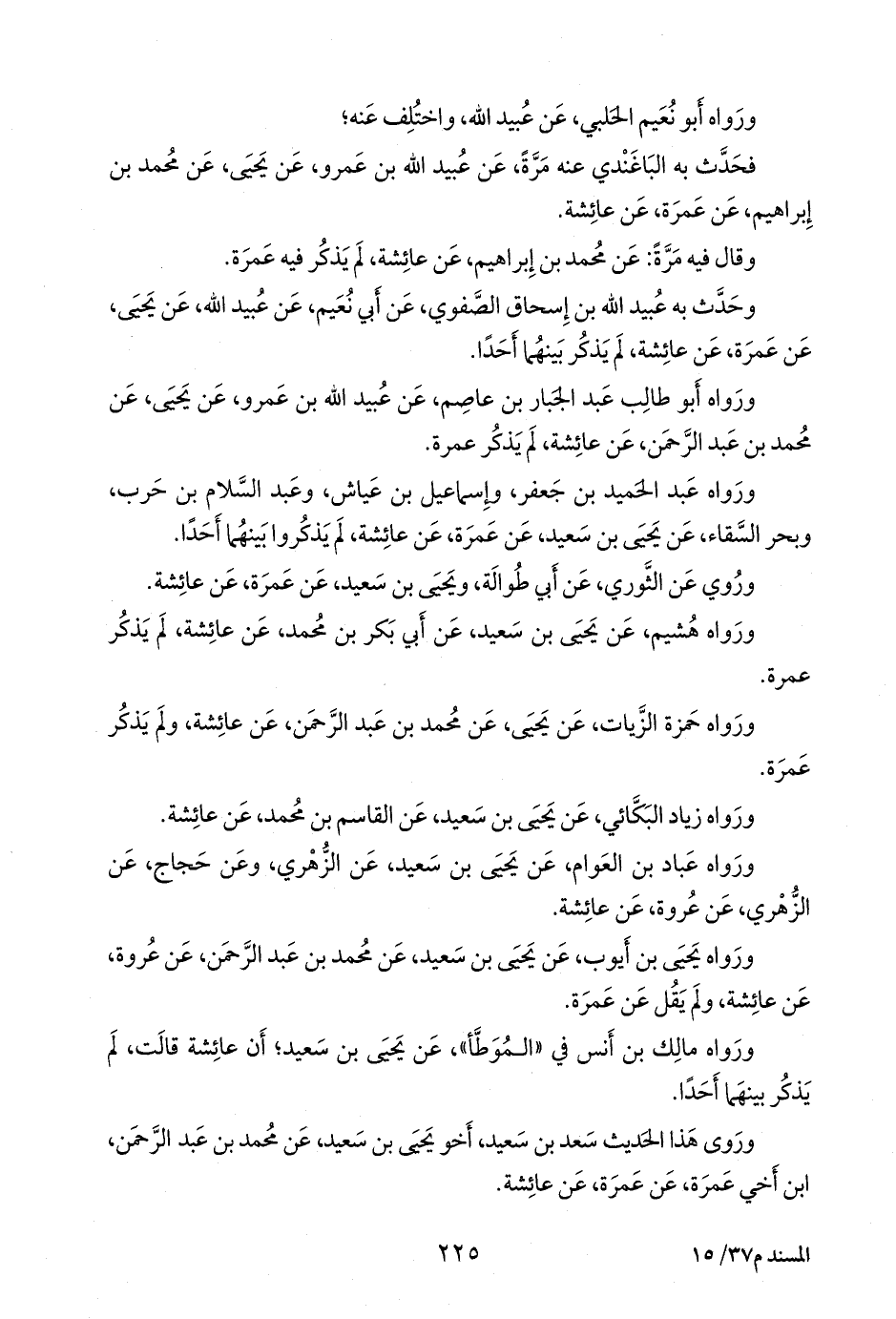 ورواه عبد الحميد بن جعفر، وإسماعيل بن عياش، وعبد السلام بن حرب، وبحر السقاء، عن يحيى بن سعيد، عن عَمرَة، عن عائشة، لم يذكروا بينهما أحدا.