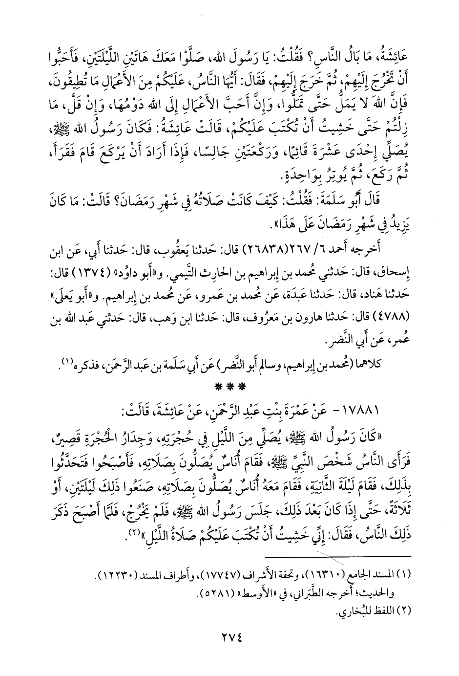 ١٧٨٨١ - عن عَمرَة بنت عبد الرَّحمَن، عن عائشة، قالت: