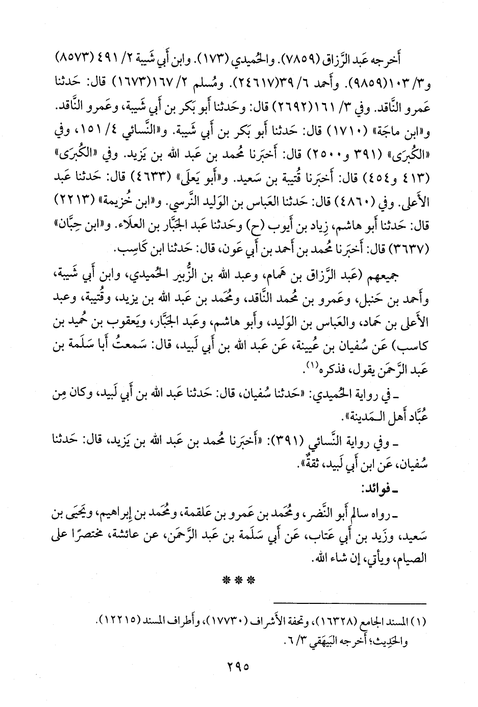 جميعهم (عبد الرزاق بن همام، وعبد الله بن الزبير الحميدي، وابن أبي شَيبة، وأحمد بن حنبل، وعَمرو بن محمد الناقد، ومحمد بن عبد الله بن يزيد، وقتيبة، وعبد الأعلى بن حماد، والعباس بن الوليد، وأَبو هاشم، وعبد الجبار، ويعقوب بن حميد بن كاسب) عن سفيان بن عُيينة، عن عبد الله بن أبي لبيد، قال: سمعت أبا سلمة بن عبد الرَّحمَن يقول، فذكره (¬١).