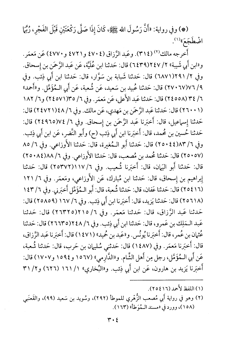 وفي ٦/ ٣٥ (٢٤٥٧١) و ٦/ ١٨٢ (٢٦٠٠١) قال: حدثنا عبد الرَّحمَن بن مهدي، عن مالك. وفي ٦/ ٤٨ (٢٤٧٢١) قال: حدثنا إسماعيل، قال: أخبرنا عبد الرَّحمَن بن إسحاق. وفي ٦/ ٧٤ (٢٤٩٦٥) قال: حدثنا حسين بن محمد، قال: أخبرنا ابن أبي ذِئب (ح) وأَبو النضر، عن ابن أبي ذِئب. وفي ٦/ ٨٣ (٢٥٠٤٤) قال: حدثنا أَبو المغيرة, قال: حدثنا الأوزاعي. وفي ٦/ ٨٥ (٢٥٠٥٧) قال: حدثنا محمد بن مصعب، قال: حدثنا الأوزاعي. وفي ٦/ ٨٨ (٢٥٠٨٤) قال: حدثنا أَبو اليمان، قال: أخبرنا شعيب. وفي ٦/ ١١٧ (٢٥٣٧٢) قال: حدثنا إبراهيم بن إسحاق، قال: حدثنا ابن مبارك، عن الأوزاعي، ومعمر. وفي ٦/ ١٢١ (٢٥٤١٦) قال: حدثنا عفان، قال: حدثنا شعبة، قال: أَبو المؤمل أخبرني. وفي ٦/ ١٤٣ (٢٥٦١٨) قال: حدثنا يزيد، قال: أخبرنا ابن أبي ذِئب. وفي ٦/ ١٦٧ (٢٥٨٥٩) قال: حدثنا عبد الرزاق, قال: حدثنا معمر. وفي ٦/ ٢١٥ (٢٦٣٢٥) قال: حدثنا عبد الملك بن عَمرو, قال: حدثنا ابن أبي ذِئب. وفي ٦/ ٢٤٨ (٢٦٦٣٥) قال: حدثنا عثمان بن عمر، قال: أخبرنا يونس. و «عَبد بن حُميد» (١٤٧١) قال: أخبرنا عبد الرزاق، قال: أخبرنا مَعمَر. وفي (١٤٨٧) قال: حدثني سليمان بن حرب, قال: حدثنا شعبة، عن أبي المؤمل، رجل من أهل الشام. و «الدَّارِمي» (١٥٦٧ و ١٥٩٤ و ١٧٠٧) قال: أخبرنا يزيد بن هارون، عن ابن أبي ذِئب. و «البخاري» ١/ ١٦١ (٦٢٦) و ٢/ ٣١