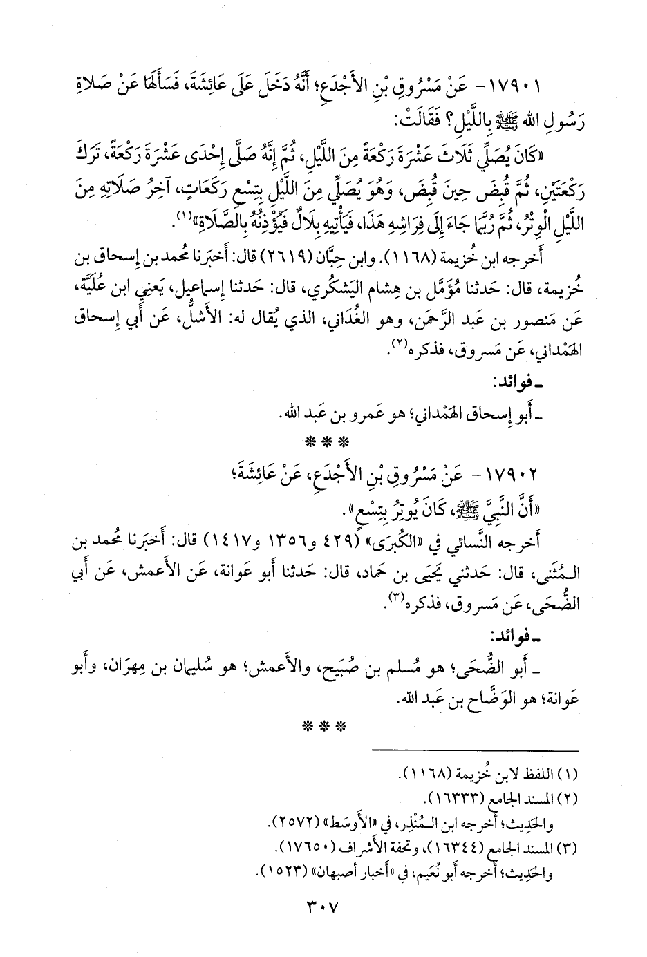 أخرجه ابن خزيمة (١١٦٨). وابن حبان (٢٦١٩) قال: أخبرنا محمد بن إسحاق بن خزيمة، قال: حدثنا مُؤَمَّل بن هشام اليشكري, قال: حدثنا إسماعيل، يعني ابن عُلَية، عن منصور بن عبد الرَّحمَن، وهو الغُدَاني، الذي يقال له: الأشل، عن أبي إسحاق الهمداني، عن مسروق، فذكره (¬٢).