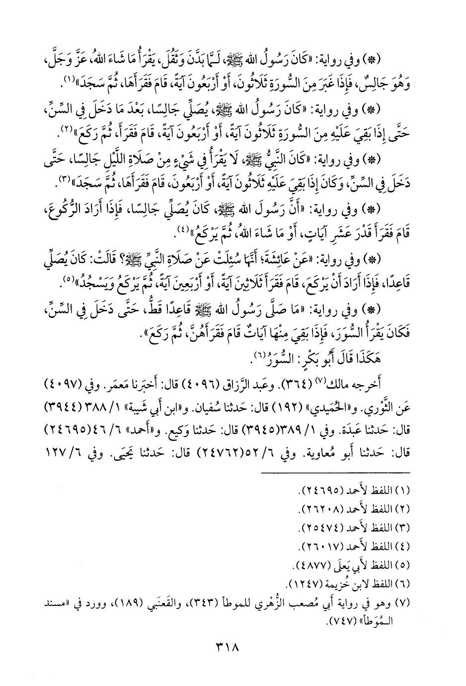 - وفي رواية: «ما صلى رسول الله صَلى الله عَليه وسَلم قاعدا قط، حتى دخل في السن، فكان يقرأ السور، فإذا بقي منها آيات قام فقرأهن، ثم ركع».