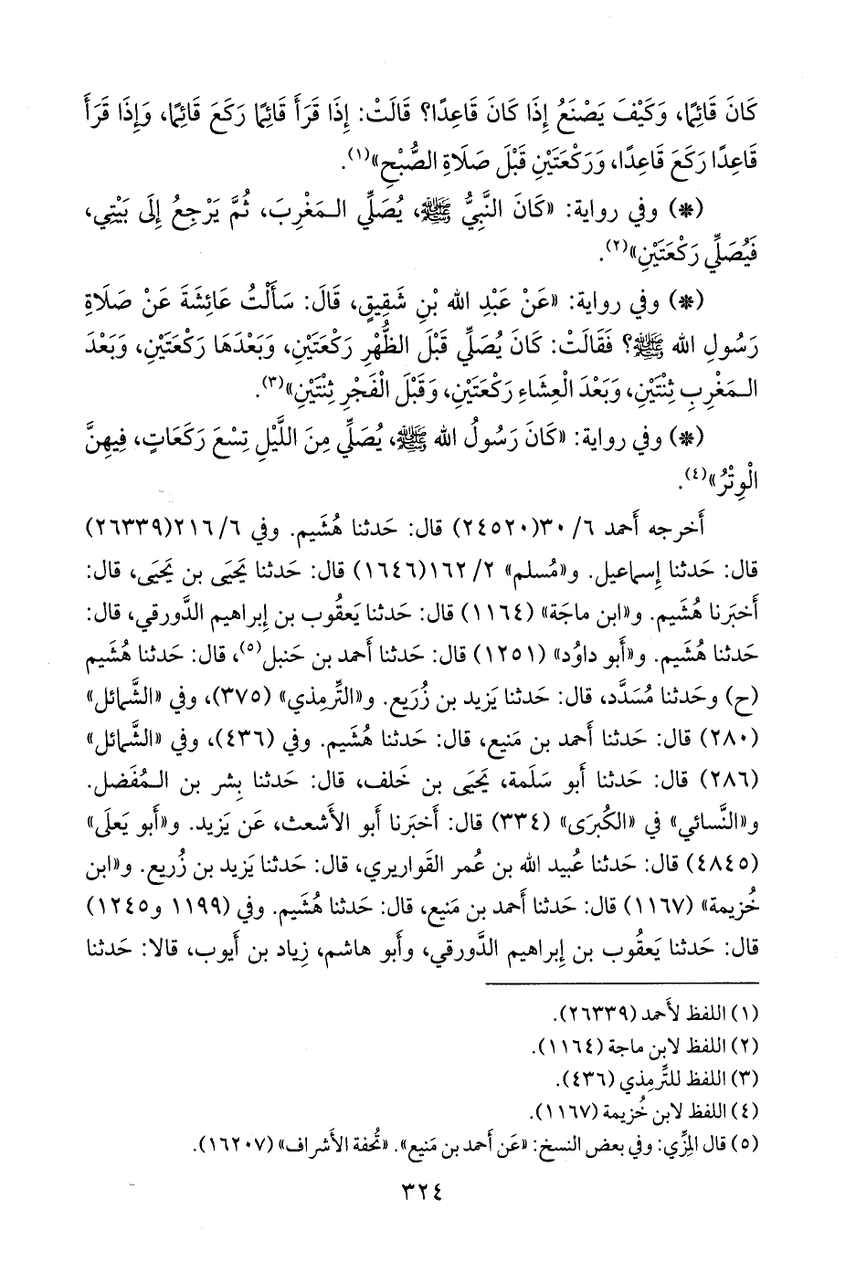 - وفي رواية: «عن عبد الله بن شقيق، قال: سألت عائشة عن صلاة رسول الله صَلى الله عَليه وسَلم؟ فقالت: كان يصلي قبل الظهر ركعتين، وبعدها ركعتين، وبعد المغرب ثنتين، وبعد العشاء ركعتين، وقبل الفجر ثنتين» (¬٢).