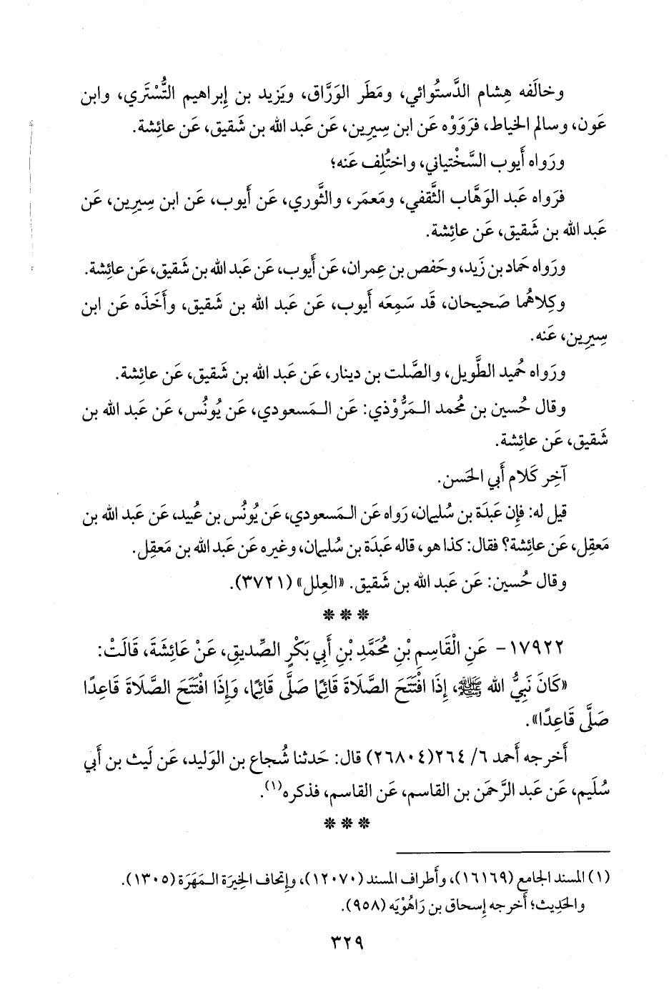 ١٧٩٢٢ - عن القاسم بن محمد بن أَبي بكر الصِّدِّيق، عن عائشة، قالت: