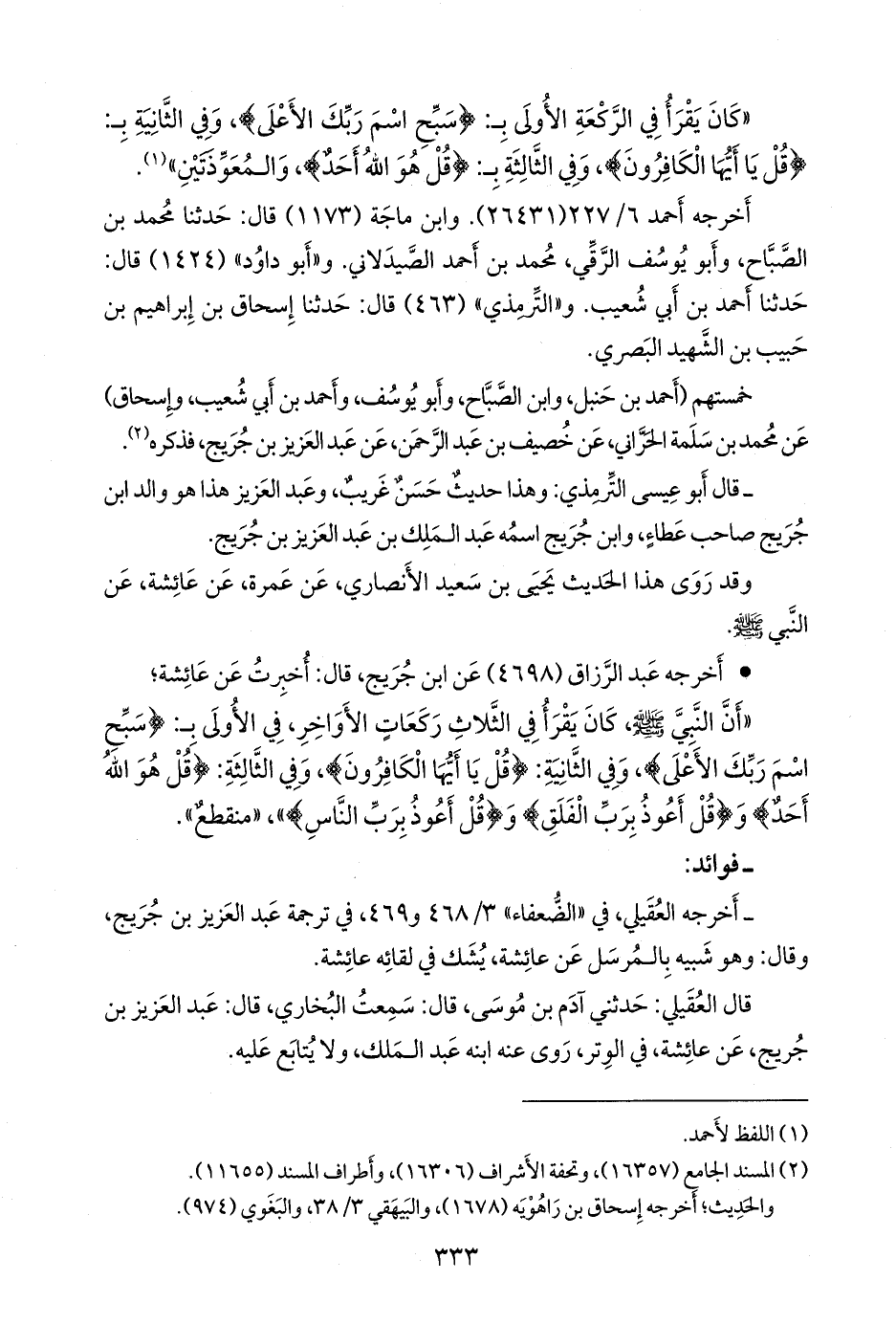 - وقال البَرقاني: قلت للدارقطني: عبد العزيز بن جُريج، عن عائشة؟ قال: مجهول، وقيل: هو والد ابن جُريج، فإن كان هو فلم يسمع من عائشة، يترك هذا الحديث. «سؤالاته» (٢٩٧).