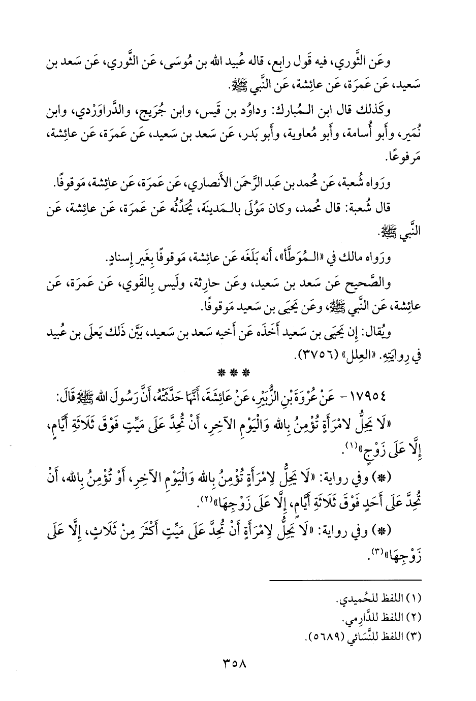- وفي رواية: «لا يحل لامرأة أن تحد على ميت أكثر من ثلاث، إلا على زوجها» (¬٣).