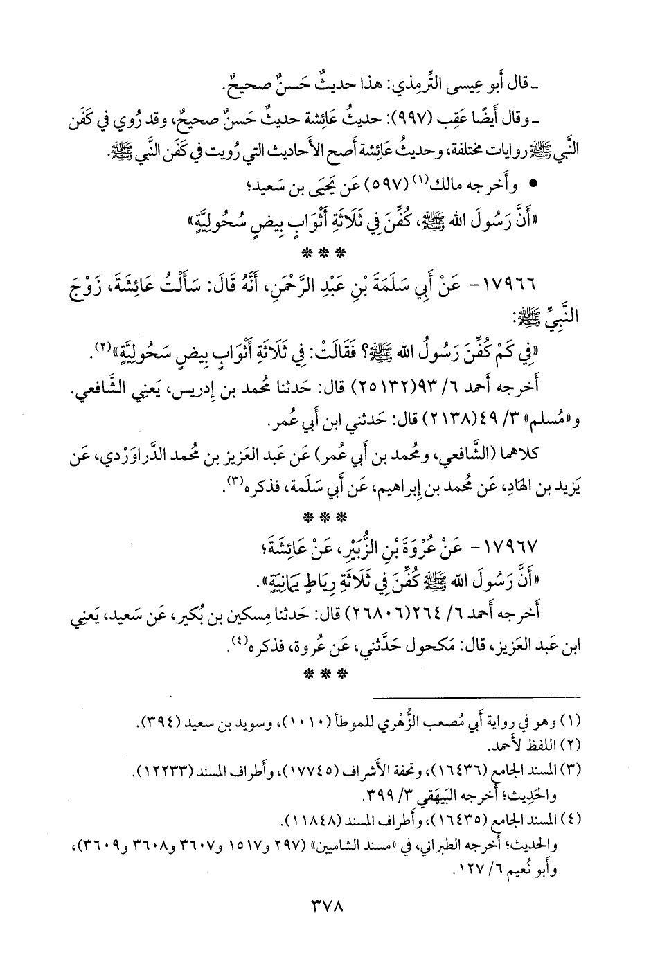 «في كم كفن رسول الله صَلى الله عَليه وسَلم؟ فقالت: في ثلاثة أثواب بيض سحولية» (¬١).