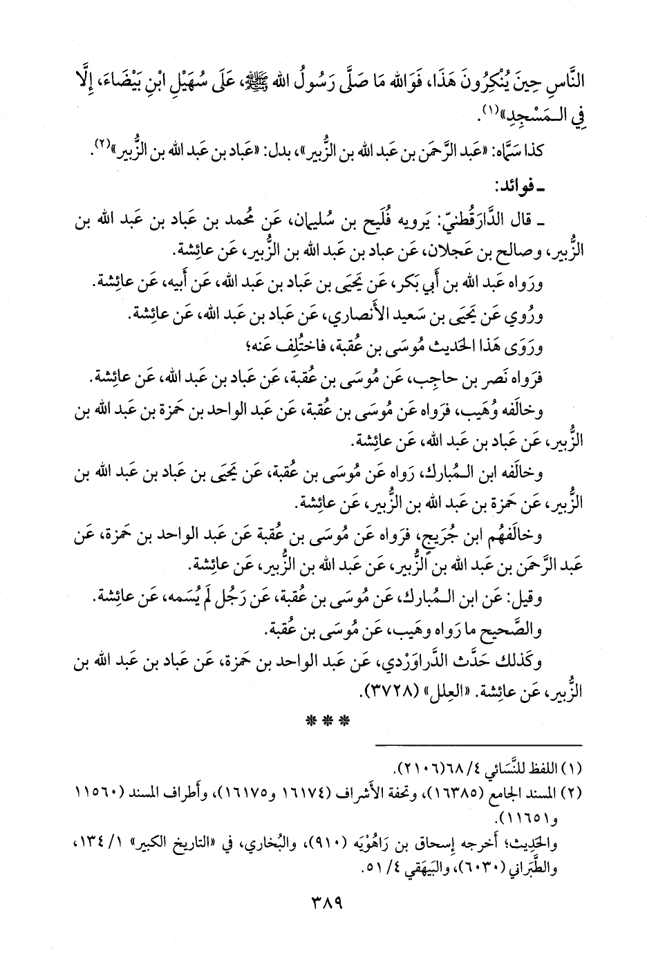 - قال الدارقُطني: يرويه فليح بن سليمان، عن محمد بن عباد بن عبد الله بن الزبير، وصالح بن عَجلان، عن عباد بن عبد الله بن الزبير، عن عائشة.