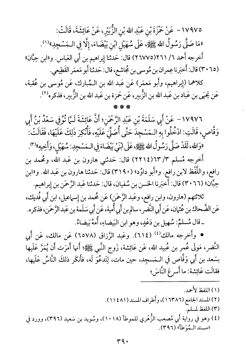 ١٧٩٧٦ - عن أبي سلمة بن عبد الرَّحمَن؛ أن عائشة لما توفي سعد بن أبي وقاص، قالت: ادخلوا به المسجد حتى أصلي عليه، فأنكر ذلك عليها، فقالت: