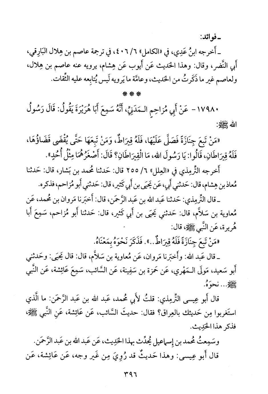 - قال عبد الله: وأخبرنا مروان، عن معاوية بن سلَّام، قال: قال يحيى: وحدثني أَبو سعيد مولى المهري، عن حمزة بن سفينة، عن السائب، سمع عائشة، عن النبي صَلى الله عَليه وسَلم، نَحوَه.