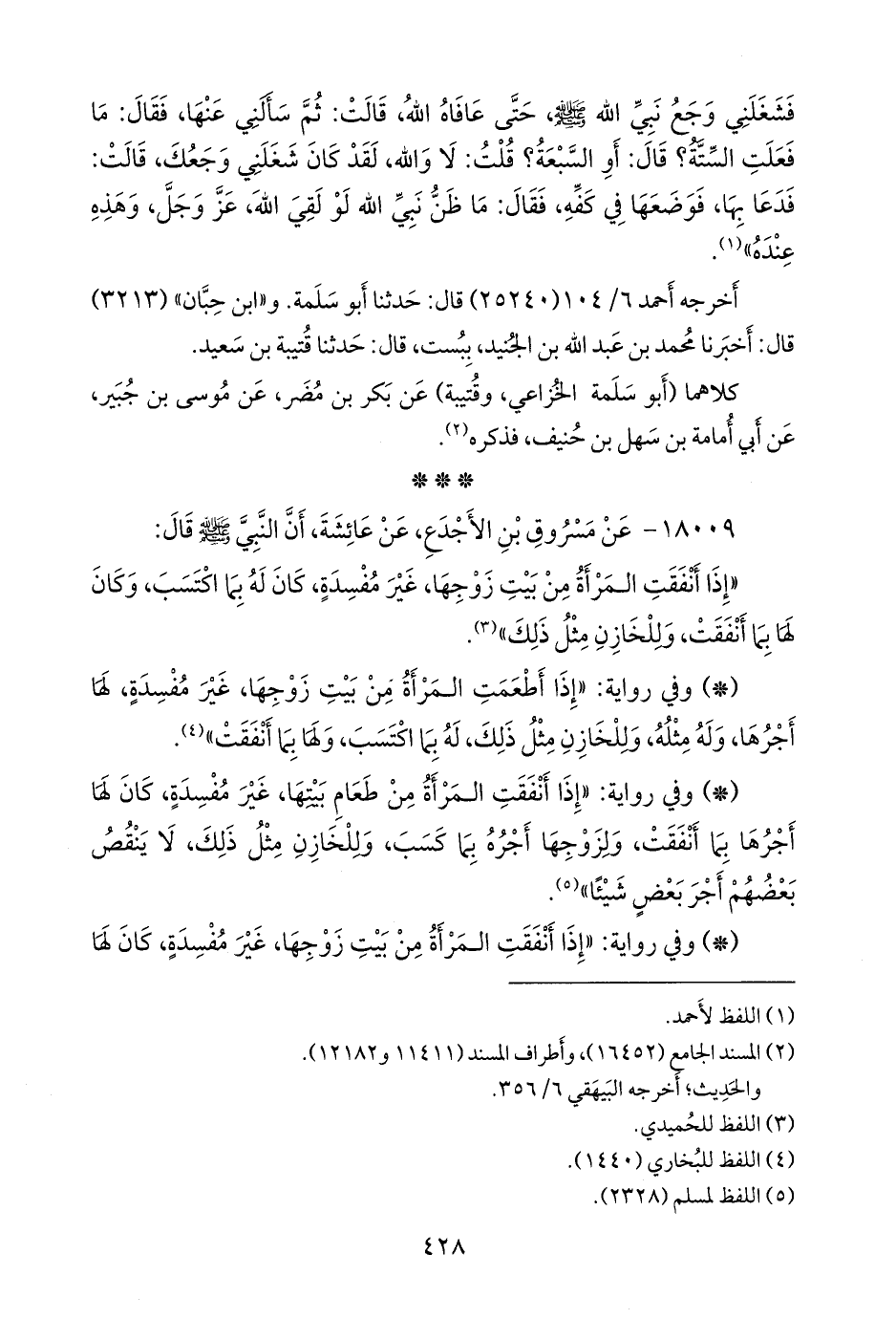 ١٨٠٠٩ - عن مسروق بن الأجدع، عن عائشة، أن النبي صَلى الله عَليه وسَلم قال: