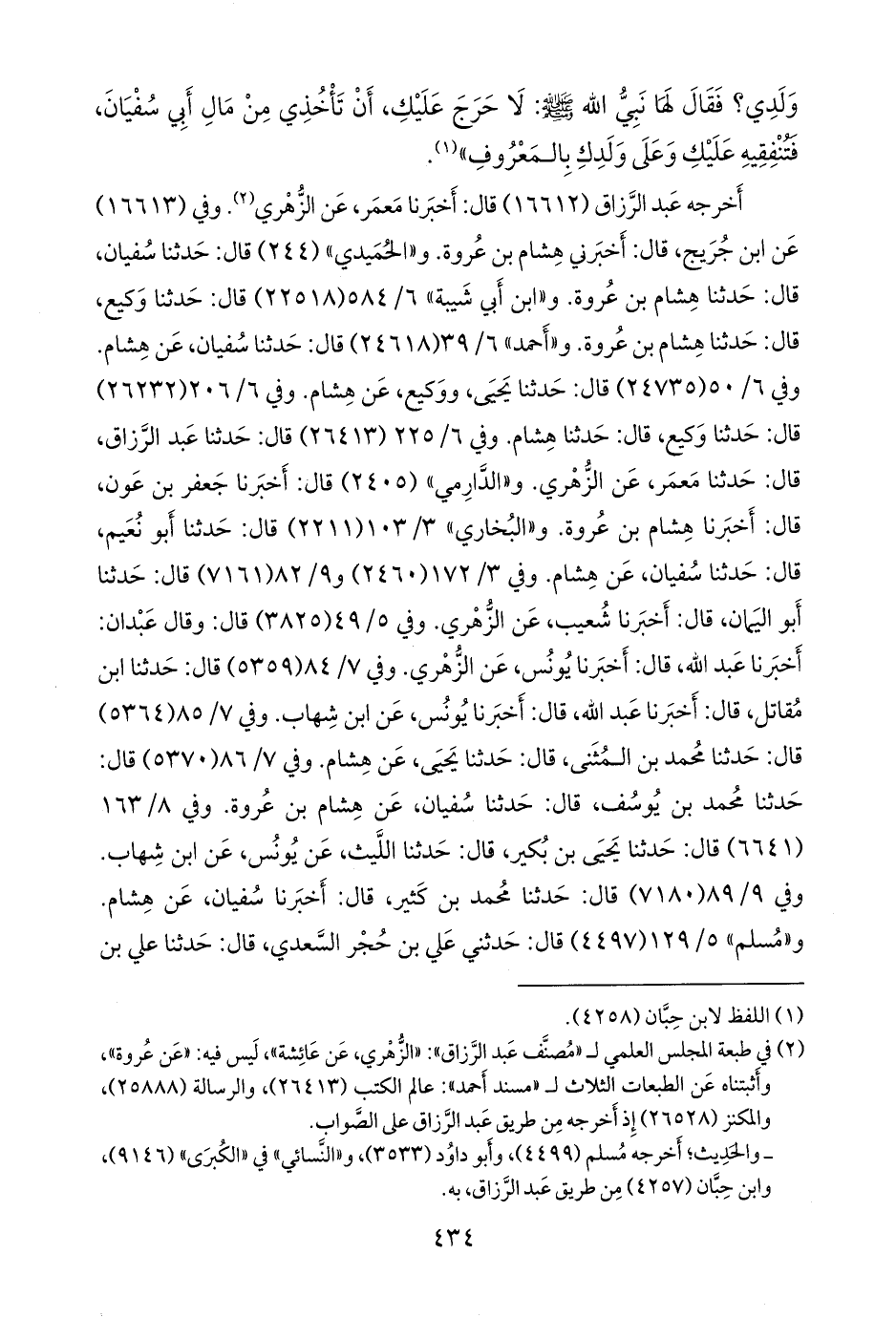 وفي (٤٤٩٨) قال: وحدثناه محمد بن عبد الله بن نُمير، وأَبو كُريب، كلاهما عن عبد الله بن نُمير، ووكيع (ح) وحدثنا يحيى بن يحيى، قال: أخبرنا عبد العزيز بن محمد (ح) وحدثنا محمد بن رافع, قال: حدثنا ابن أبي فُديك، قال: أخبرنا الضحاك، يعني ابن عثمان، كلهم عن هشام، بهذا الإسناد. وفي ٥/ ١٣٠ (٤٤٩٩) قال: وحدثنا عَبد بن حُميد، قال: أخبرنا عبد الرزاق، قال: أخبرنا مَعمَر، عن الزُّهْري. وفي (٤٥٠٠) قال: حدثنا زهير بن حرب, قال: حدثنا يعقوب بن إبراهيم, قال: حدثنا ابن أخي الزُّهْري، عن عمه. و «ابن ماجة» (٢٢٩٣) قال: حدثنا أَبو بكر بن أبي شيبة، وعلي بن محمد، وأَبو عمر الضرير، قالوا: حدثنا وكيع، قال: حدثنا هشام بن عروة. و «أَبو داود» (٣٥٣٢) قال: حدثنا أحمد بن يونس, قال: حدثنا زهير، قال: حدثنا هشام بن عروة. وفي (٣٥٣٣) قال: حدثنا خشيش بن أصرم, قال: حدثنا عبد الرزاق, قال: أخبرنا مَعمَر، عن الزُّهْري. و «النَّسَائي» ٨/ ٢٤٦ قال: أخبرنا إسحاق بن إبراهيم، قال: أنبأنا وكيع، قال: حدثنا هشام بن عروة. وفي «الكبرى» (٥٩٤١) قال: أخبرنا إسحاق بن إبراهيم، قال: أخبرنا أَبو معاوية، قال: حدثنا هشام بن عروة.