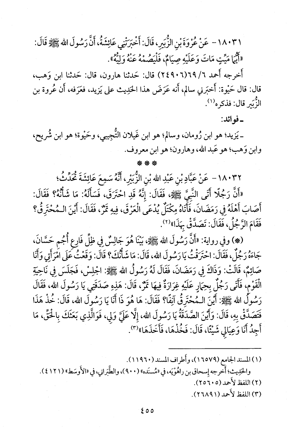 (¬١) المسند الجامع (١٦٥٧٩)، وأطراف المسند (١١٩٦٠).