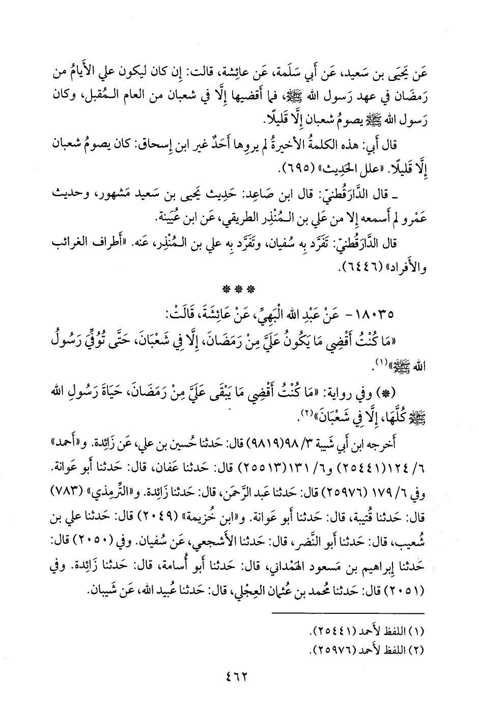 - قال الدارقُطني: قال ابن صاعد: حديث يحيى بن سعيد مشهور، وحديث عَمرو لم أسمعه إلا من علي بن المنذر الطريقي، عن ابن عُيينة.