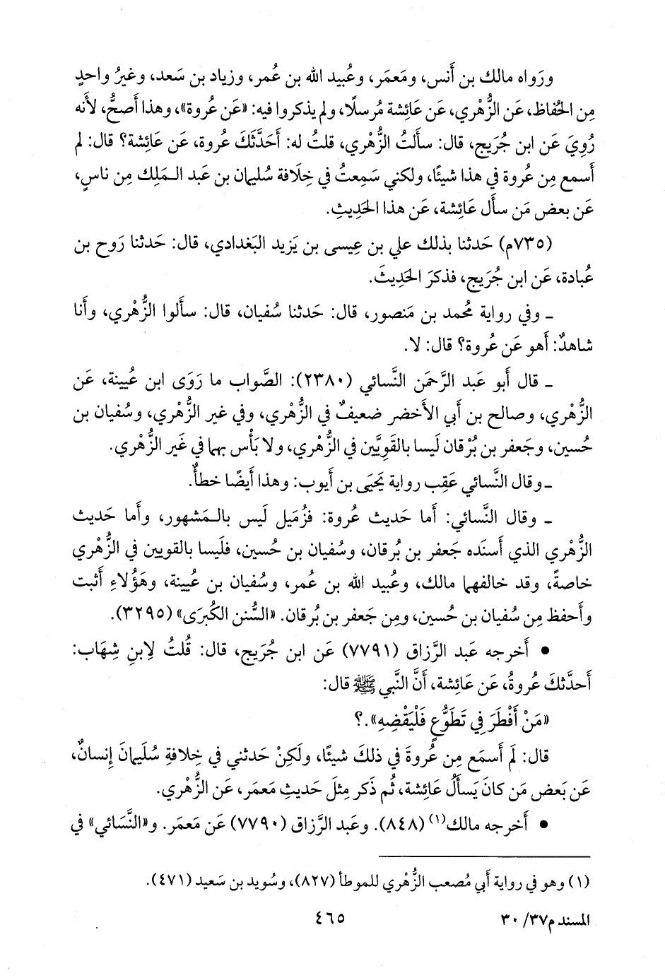 • أَخرجه عبد الرزاق (٧٧٩١) عن ابن جُريج، قال: قلت لابن شهاب: أحدثك عروة، عن عائشة، أن النبي صَلى الله عَليه وسَلم قال: