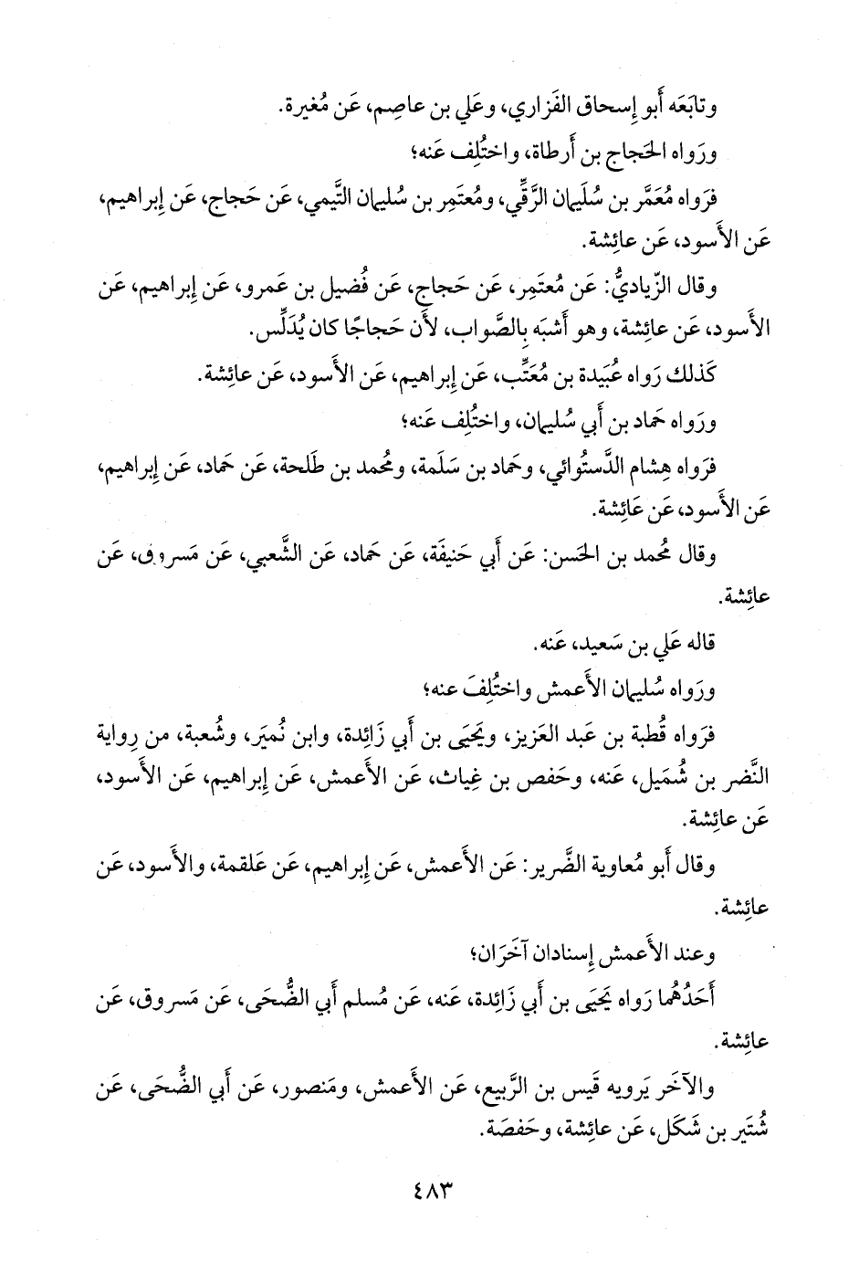 فرواه قطبة بن عبد العزيز، ويحيى بن أبي زائدة، وابن نُمير، وشعبة، من رواية النضر بن شميل، عنه، وحفص بن غياث، عن الأعمش، عن إبراهيم، عن الأسود، عن عائشة.