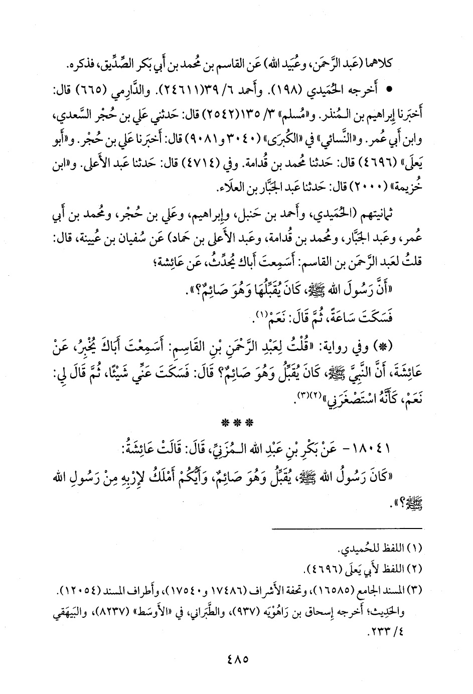 (¬٣) المسند الجامع (١٦٥٨٥)، وتحفة الأشراف (١٧٤٨٦ و ١٧٥٤٠)، وأطراف المسند (١٢٠٥٤).