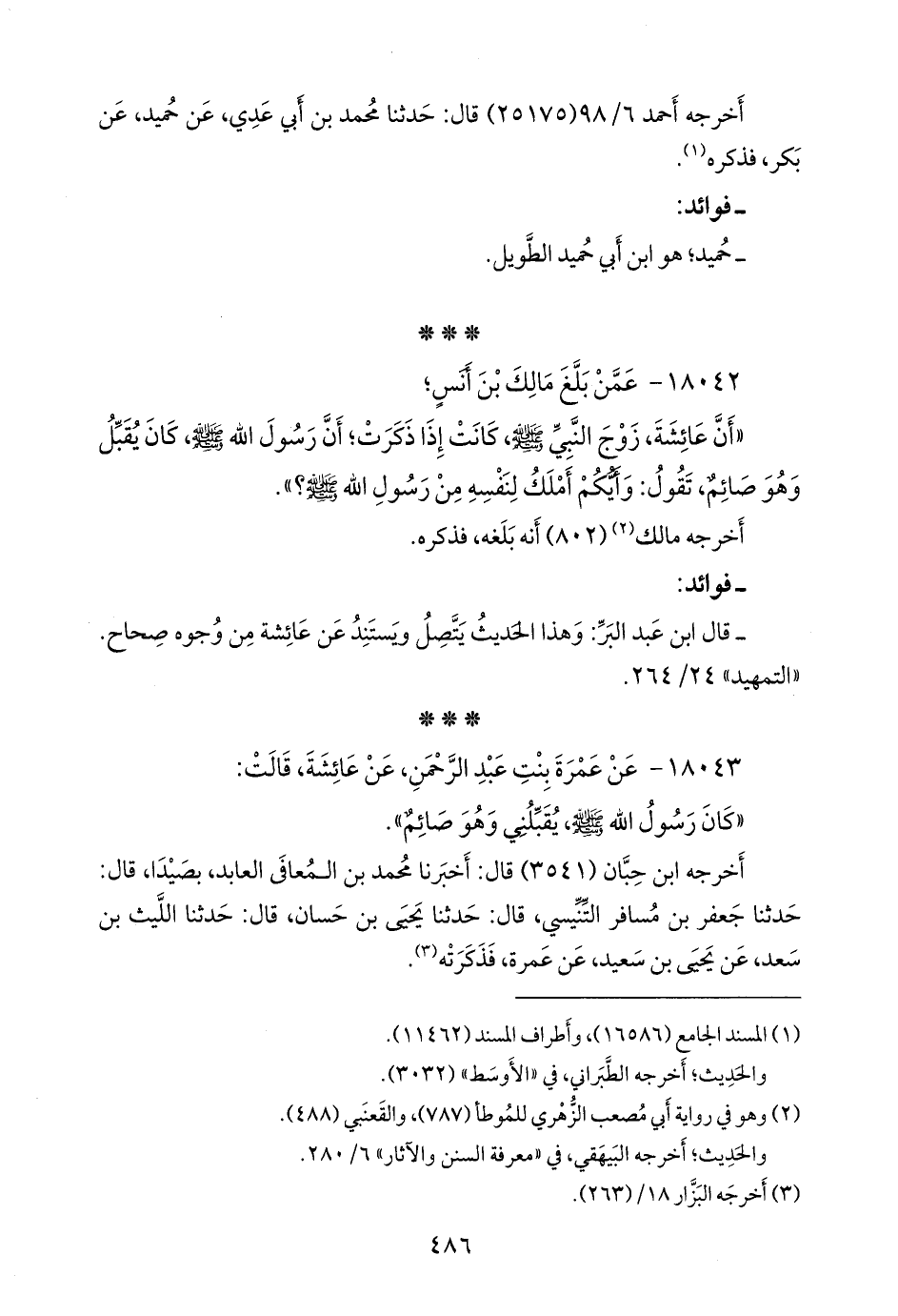 - قال ابن عبد البَر: وهذا الحديث يتصل ويستند عن عائشة من وجوه صحاح. «التمهيد» ٢٤/ ٢٦٤.