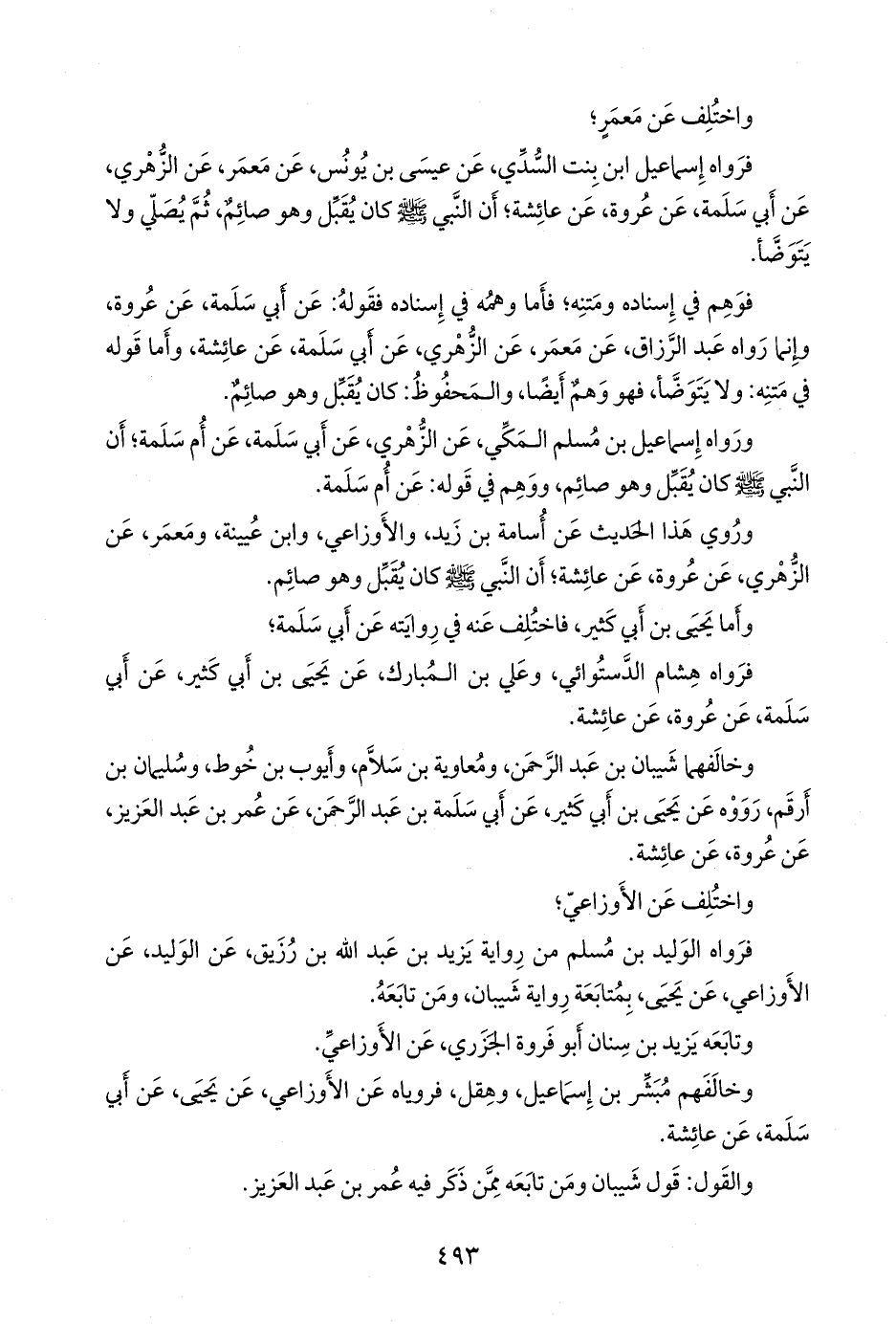 وروي هذا الحديث عن أسامة بن زيد، والأوزاعي، وابن عُيينة، ومعمر، عن الزُّهْري، عن عروة، عن عائشة؛ أن النبي صَلى الله عَليه وسَلم كان يقبل وهو صائم.