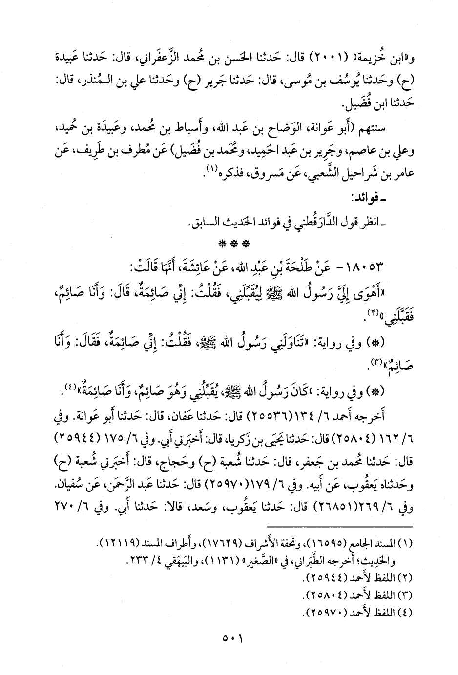 - وفي رواية: «كان رسول الله صَلى الله عَليه وسَلم يقبلني وهو صائم، وأنا صائمة» (¬٣).
