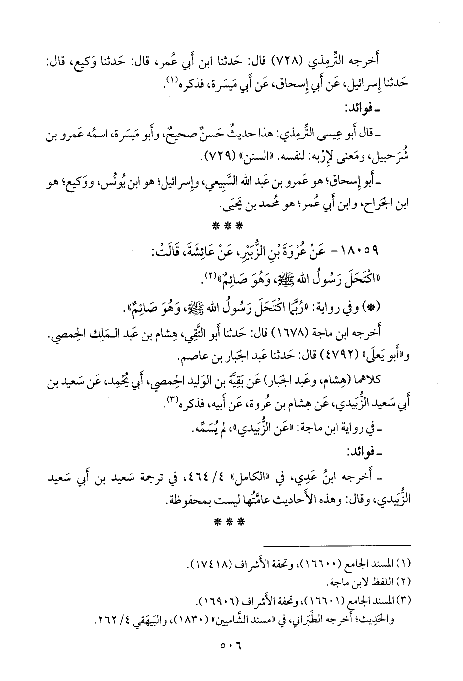 - وفي رواية: «ربما اكتحل رسول الله صَلى الله عَليه وسَلم وهو صائم».
